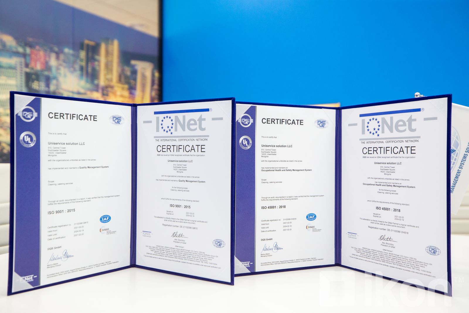Мөн бид Монголынхоо байгууллагуудад IQNet-ийн батламжийг авч олон улсад өрсөлдөх чадвараа нэмэгдүүлэх боломжийг олгожбайна. IQNet бол хамгийн том олон улсын баталгаажуулалтын холбоо бөгөөд 1990 онд үүсгэн байгуулагдсанаасаа хойш, дэлхийдтэргүүлэгч баталгаажуулалтын байгууллагуудын хамгийн том нэгдэл болжээ. DQS-ээс батламж авсан байгууллагад IQNet-ийнбатламжийг давхар олгодог давуу талтай юм. IQNet-ийн гишүүд нь тухайн улсдаа нэр хүндтэй баталгаажуулалтын байгууллагуудбайдаг. Нэг гишүүн байгууллагаас олгосон батламжийг IQNet холбооны бусад харилцан хүлээн зөвшөөрдөг. Өөрөөр хэлбэл IQNetийн батламж нь 40 гаруй улсад хөрвөх чадвартай гэсэн үг. IQNet-ийн сертификат авсан байгууллагуудыг дэлхийн хамгийн томудирдлагын тогтолцооны сертификатын бүртгэл болох IQNet мэдээллийн санд бүртгэдэг бөгөөд IQNet вэб сайтаар дамжуулан угсанд хандах боломжтой.
